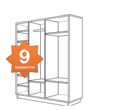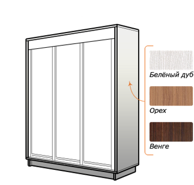 Мы выпускаем серийные шкафы-купе, но вы можете выбрать подходящие для вашего интерьера варианты ширины, высоты и глубины. Для отдельно стоящих шкафов-купе Е1 есть 24 варианта размеров, которые подбираются по комбинациям высоты, глубины и ширины.